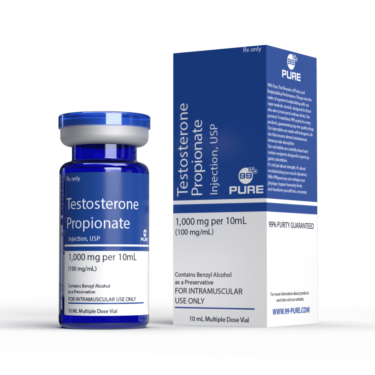 Testosterone Propionate, fast-acting androgen. Used to stimulate quick gains in muscle mass and strength, often used in bulking cycles.